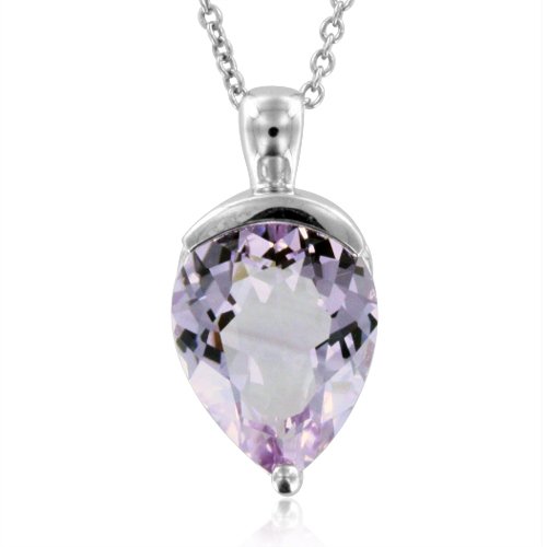 This natural Amethyst necklace is beautifully crafted in sterling silver with a 16 x 12 mm Pear Shaped Rose De France Amethyst. Amethyst is the February birthstone. Birthstone jewelry is one of the perfect jewelry gifts for wedding anniversary, birthday, or any holiday occasion. This natural amethyst pendant comes with a 18-inch sterling silver chain. The height of the amethyst pendant is 24mm and the width is 13mm.